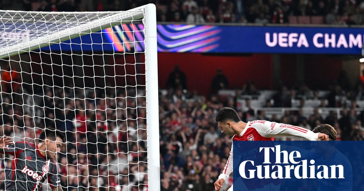 لا يهم. لم يمض وقت طويل قبل أن يقود آرسنال ، وكان مارتينيلي مع الصنبور من زاوية ضيقة بعد أن رأى فيكتور جيكرس حارس المرمى ، كوستاس تسولاكيس ، ينحرف عن تسديدته على المنصب. لعب Ødegaard التمريرة إلى Gyökeres وكان كل شيء عن قوة المهاجم ؛ لقد تعرض للتجريف بين اثنين من المدافعين عن أولمبياكوس لتحقيق ذلك.