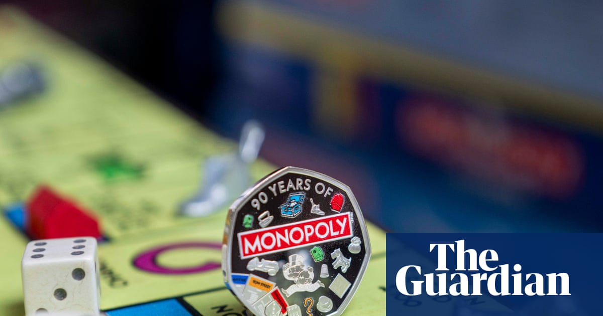 يتم إطلاق عملة تذكارية 50p التي تحتفل بالاحتكار لمدة 90 عامًا من قبل Royal Mint. تتميز العملة المعدنية الملونة برموز اللعبة وبطاقات الممتلكات ، بالإضافة إلى السيد Monopoly الذي لا لبس فيه (أو Milburn Pennybags)